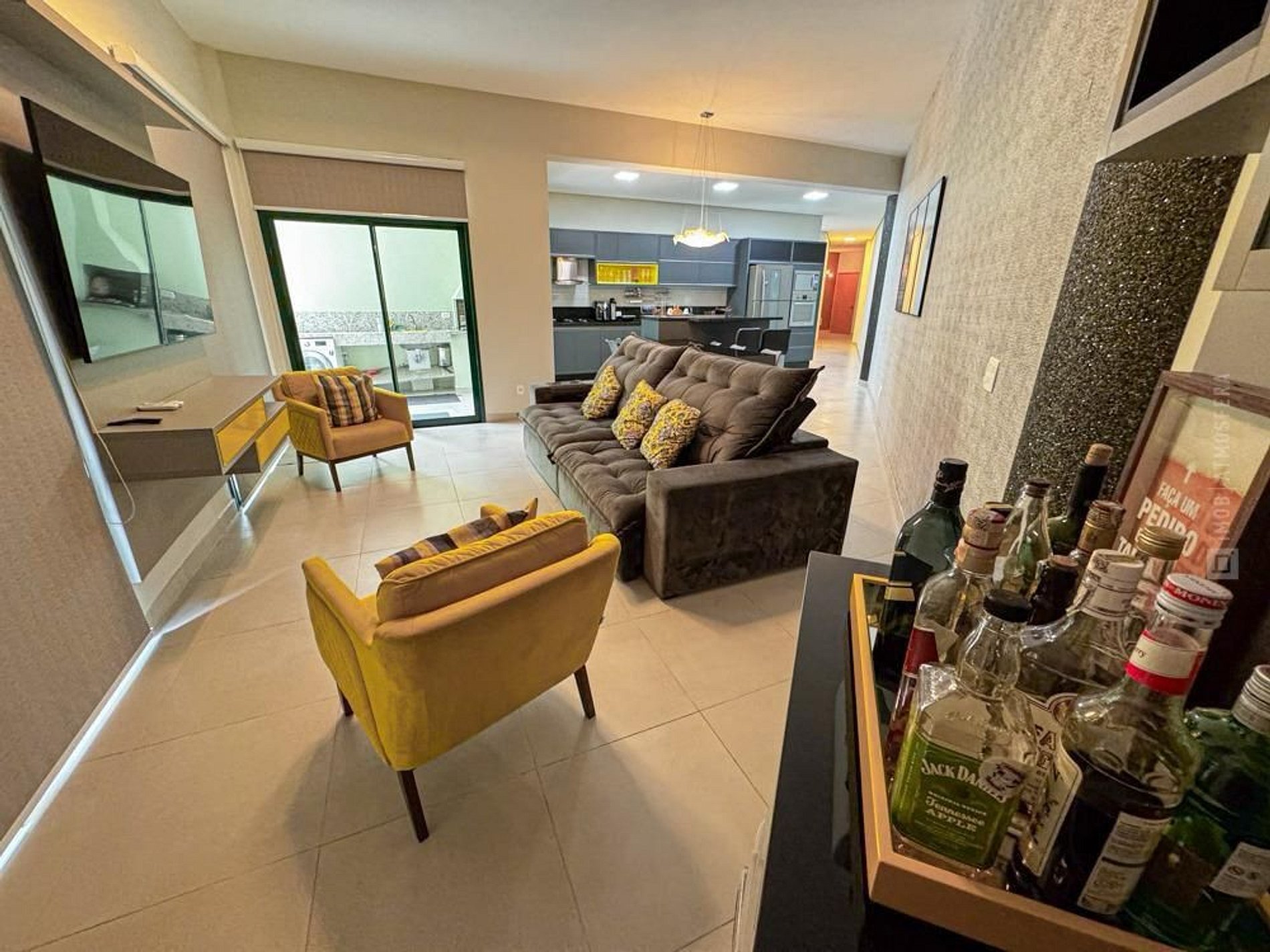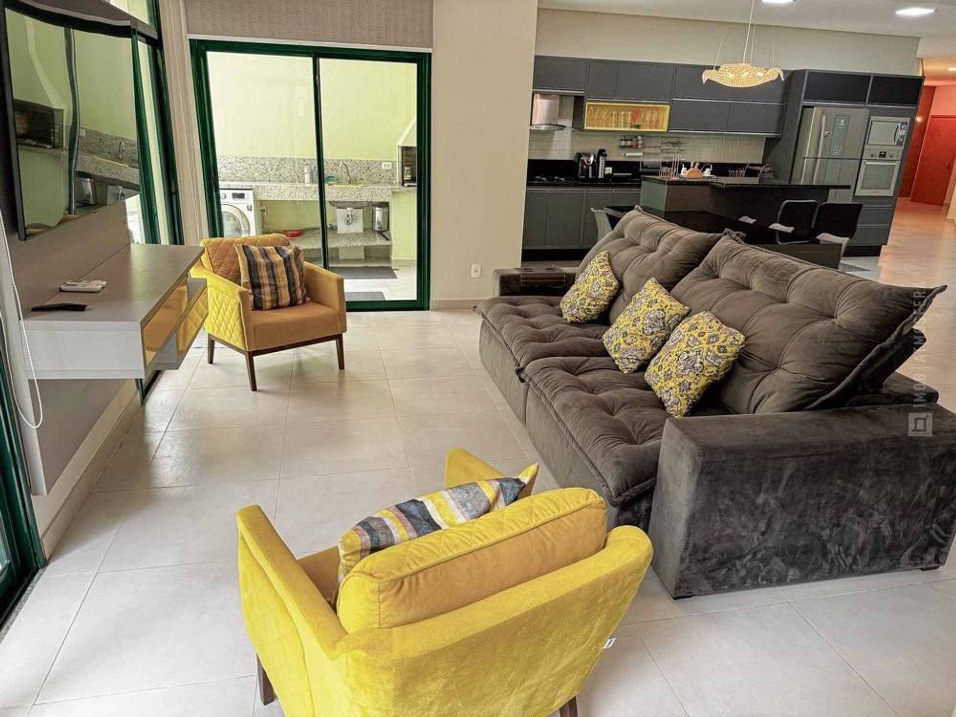 Área de estar com sofá/cadeira