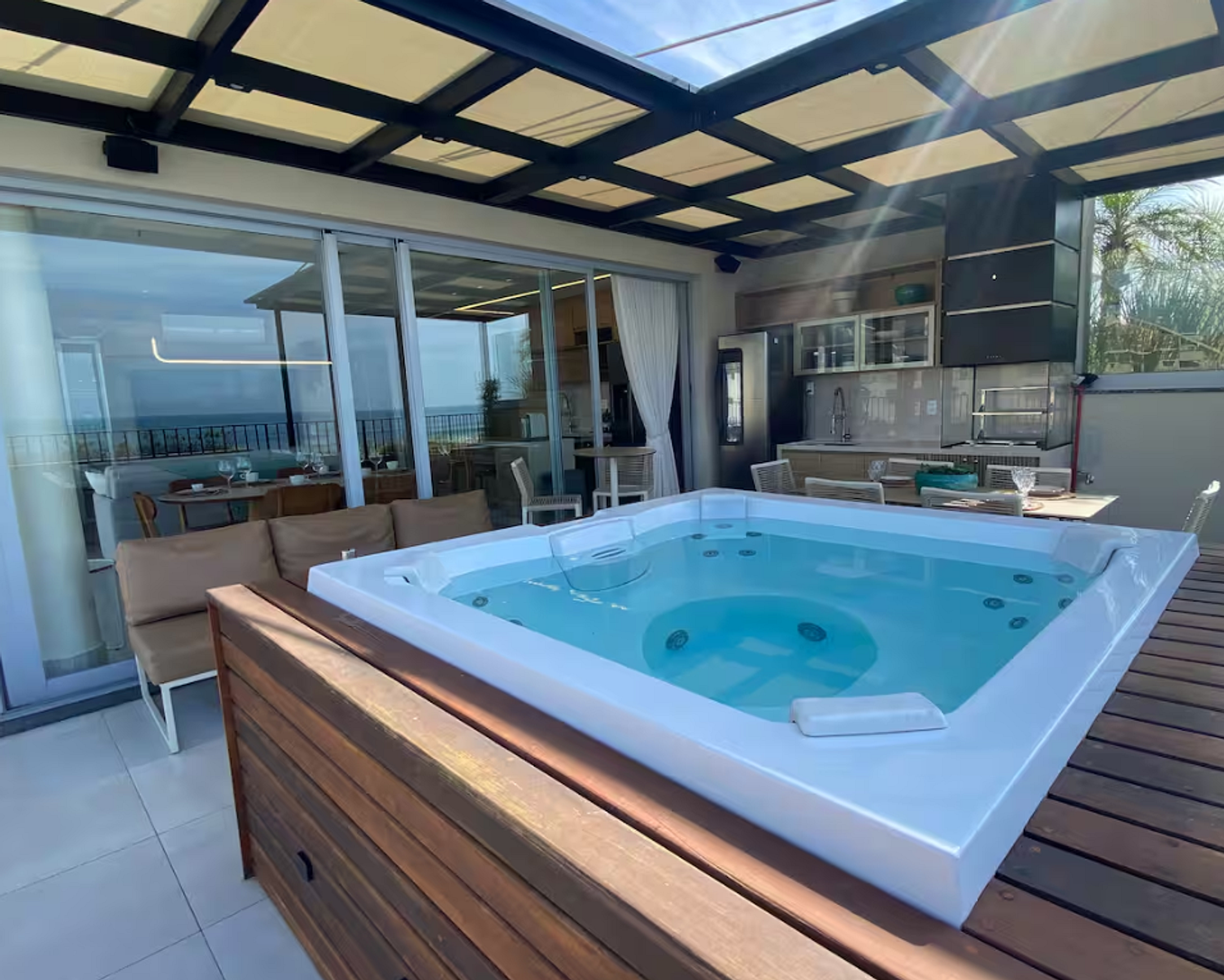 Linda cobertura muito bem equipada, com jacuzzi exclusiva, churrasqueira e vista mar no condomínio Bambu, Praia Grande de Ubatuba.